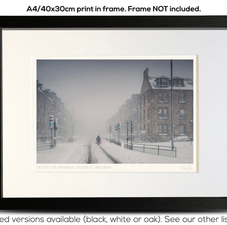 Supplied already mounted, wrapped & with signed labels & certificate, the image is printed on A4 size fine art paper (210x297mm). The actual image size is smaller (see listing images for sizes - image approx. 268x179mm) to allow for the signature & inscription. The 100% acid-free mount is cut to fit standard ready-made frames from high street stores. EXTERNAL mount size is 40cm x 30cm. This is the OUTSIDE size of the mount (and thus the size your frame should be).
