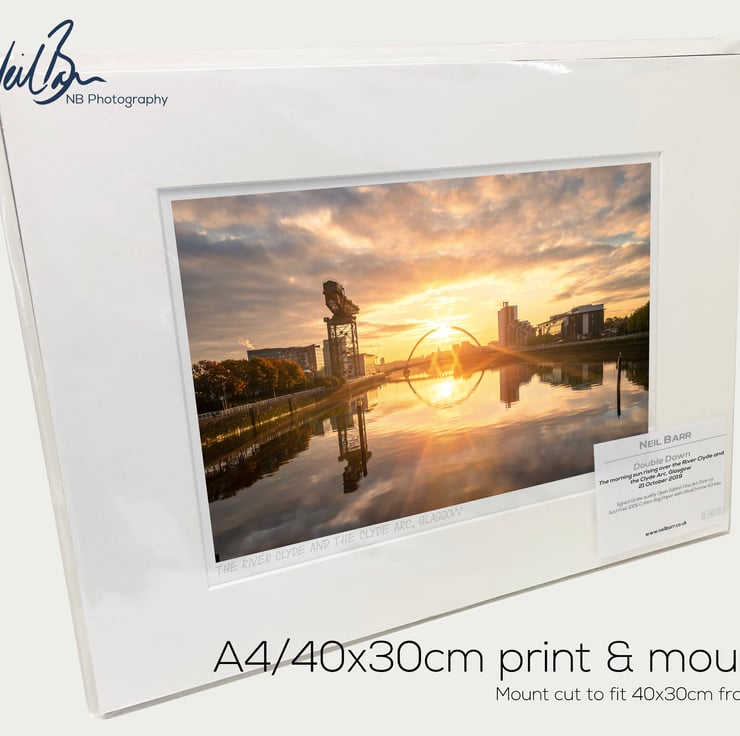 Supplied already mounted, wrapped & with signed labels & certificate, the image is printed on A4 size fine art paper (210x297mm). The actual image size is smaller (see listing images for sizes - image approx. 268x179mm) to allow for the signature & inscription. The 100% acid-free mount is cut to fit standard ready-made frames from high street stores. EXTERNAL mount size is 40cm x 30cm. This is the OUTSIDE size of the mount (and thus the size your frame should be).