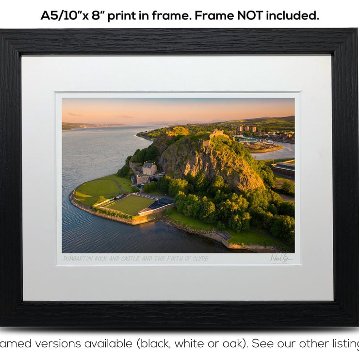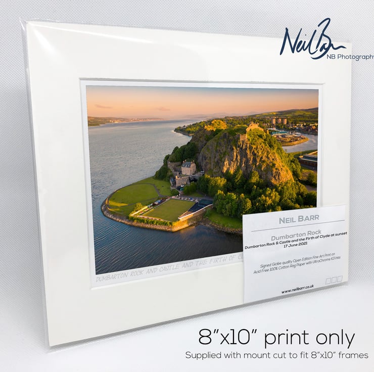 Supplied already mounted, wrapped & with signed labels & certificate, the image is printed on A5 size fine art paper (148x210mm). The actual image size is smaller (see listing images for sizes - image approx. 185x123mm) to allow for the signature & inscription. The 100% acid-free mount is cut to fit standard ready-made frames from high street stores. EXTERNAL mount size is 10"x8". This is the OUTSIDE size of the mount (and thus the size your frame should be).