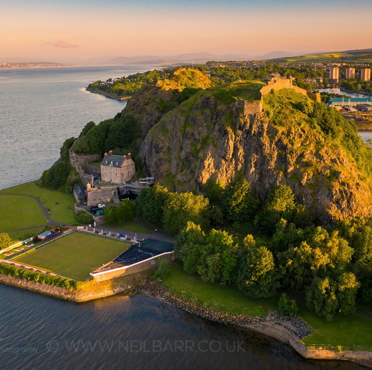 Image: "Dumbarton Rock" - Dumbarton Rock and Castle and the Firth of Clyde at sunset, 17 June 2021 - by Scotland photographer Neil Barr