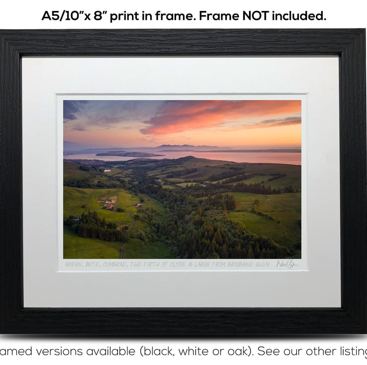 Supplied already mounted, wrapped & with signed labels & certificate, the image is printed on A5 size fine art paper (148x210mm). The actual image size is smaller (see listing images for sizes - image approx. 185x123mm) to allow for the signature & inscription. The 100% acid-free mount is cut to fit standard ready-made frames from high street stores. EXTERNAL mount size is 10"x8". This is the OUTSIDE size of the mount (and thus the size your frame should be).