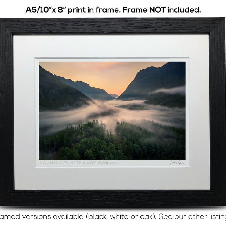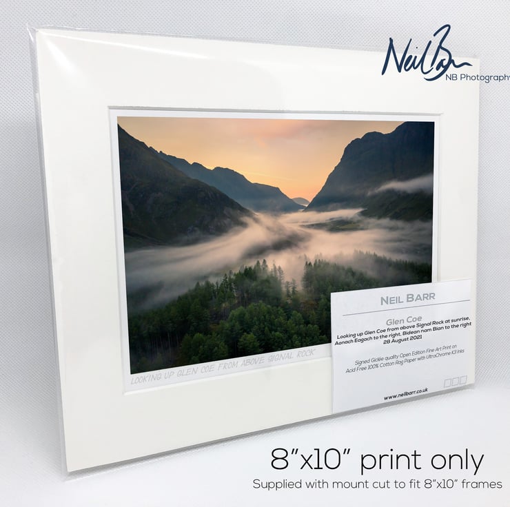 Supplied already mounted, wrapped & with signed labels & certificate, the image is printed on A5 size fine art paper (148x210mm). The actual image size is smaller (see listing images for sizes - image approx. 185x123mm) to allow for the signature & inscription. The 100% acid-free mount is cut to fit standard ready-made frames from high street stores. EXTERNAL mount size is 10"x8". This is the OUTSIDE size of the mount (and thus the size your frame should be).