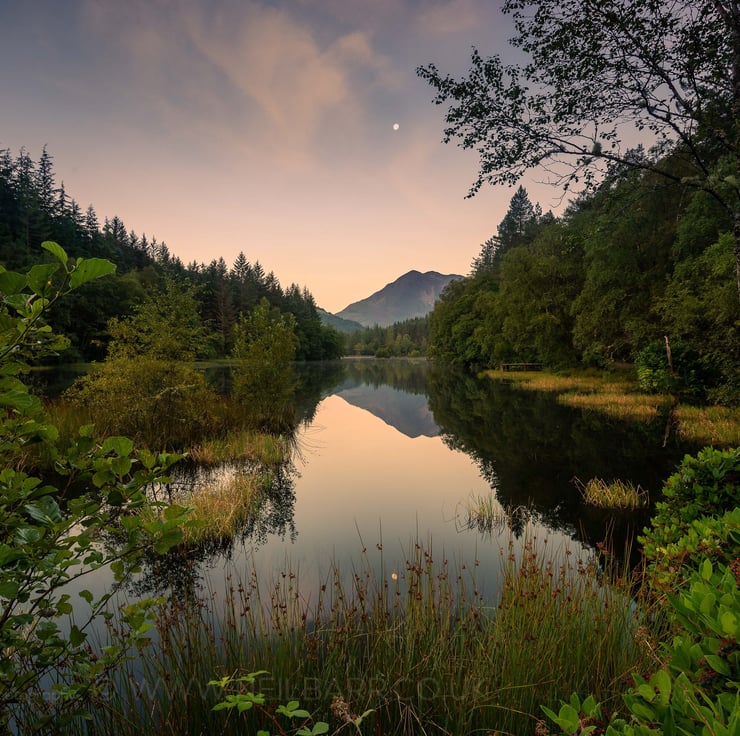Image: "Glencoe Lochan" - Sgorr Bhan and Sgorr Dhearg reflected in Glencoe Lochan at sunrise, 25 August 2021 - by Scotland photographer Neil Barr