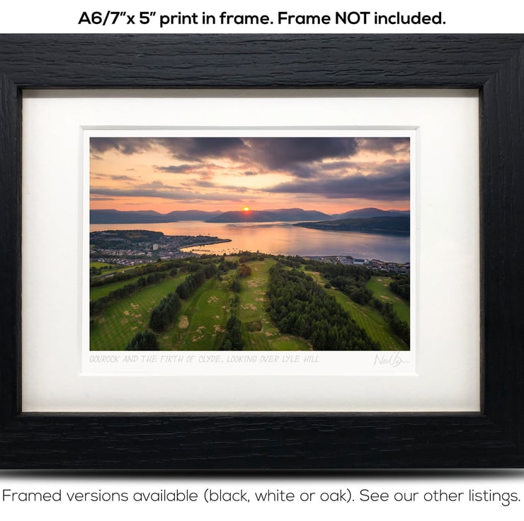 Supplied already mounted, wrapped & with signed labels & certificate, the image is printed on A6 size fine art paper (148x105mm). The actual image size is smaller (see listing images for sizes - image approx. 115x77mm) to allow for the signature & inscription. The 100% acid-free mount is cut to fit standard ready-made frames from high street stores. EXTERNAL mount size is 7"x5". This is the OUTSIDE size of the mount (and thus the size your frame should be).