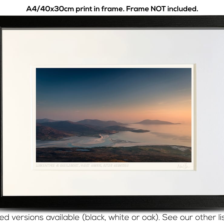 Supplied already mounted, wrapped & with signed labels & certificate, the image is printed on A4 size fine art paper (210x297mm). The actual image size is smaller (see listing images for sizes - image approx. 268x162mm) to allow for the signature & inscription. The 100% acid-free mount is cut to fit standard ready-made frames from high street stores. EXTERNAL mount size is 40cm x 30cm. This is the OUTSIDE size of the mount (and thus the size your frame should be).
