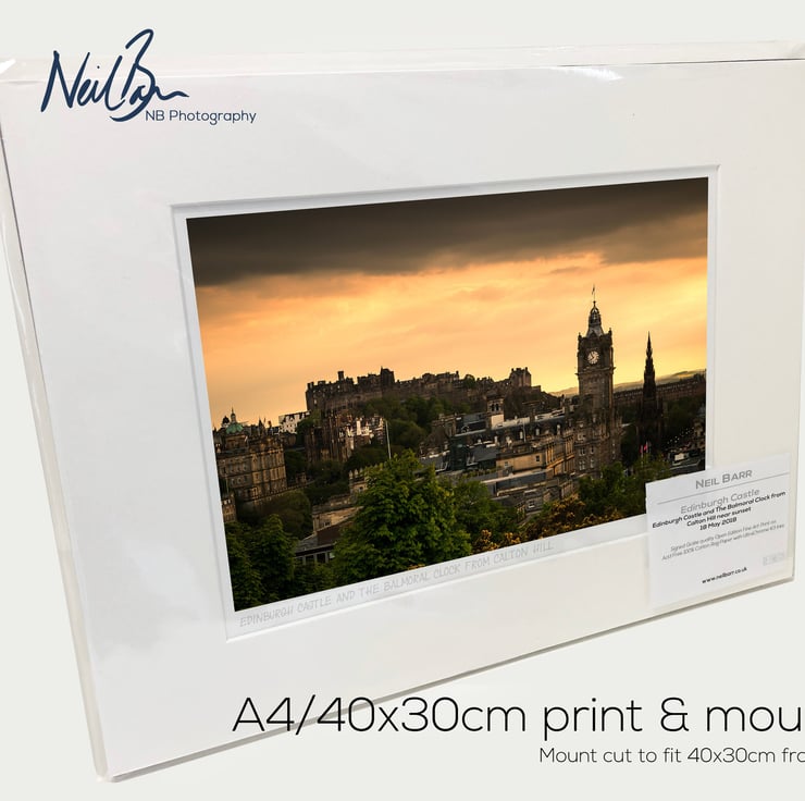 Supplied already mounted, wrapped & with signed labels & certificate, the image is printed on A4 size fine art paper (210x297mm). The actual image size is smaller (see listing images for sizes - image approx. 268x179mm) to allow for the signature & inscription. The 100% acid-free mount is cut to fit standard ready-made frames from high street stores. EXTERNAL mount size is 40cm x 30cm. This is the OUTSIDE size of the mount (and thus the size your frame should be).