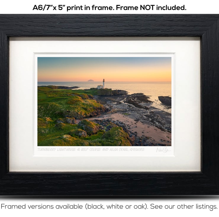 Supplied already mounted, wrapped & with signed labels & certificate, the image is printed on A6 size fine art paper (148x105mm). The actual image size is smaller (see listing images for sizes - image approx. 115x77mm) to allow for the signature & inscription. The 100% acid-free mount is cut to fit standard ready-made frames from high street stores. EXTERNAL mount size is 7"x5". This is the OUTSIDE size of the mount (and thus the size your frame should be).
