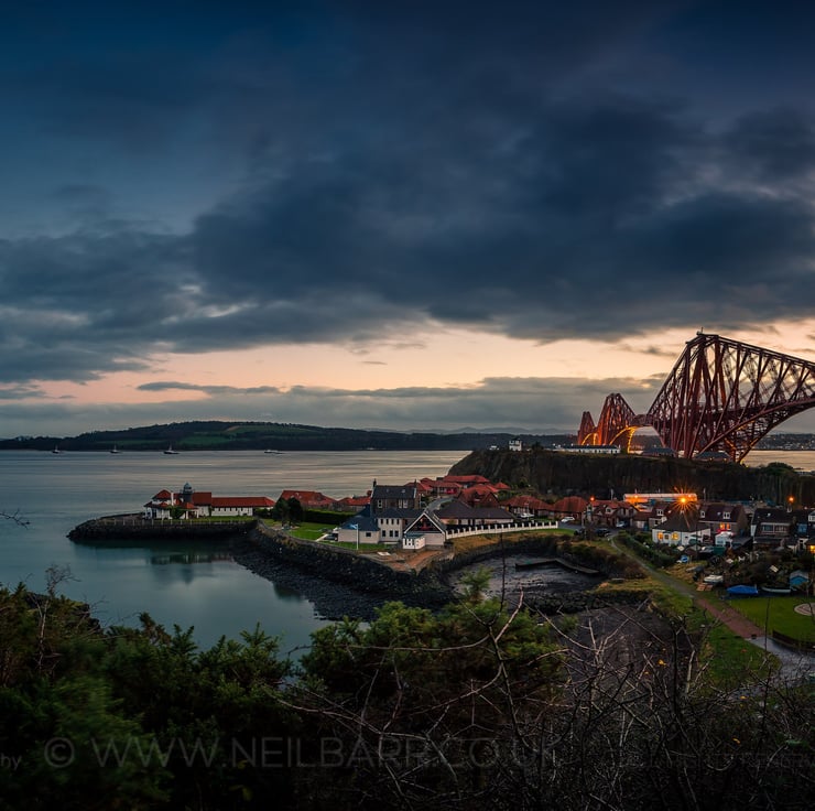 Image: "North Queensferry" - North Queensferry, the Firth of Forth and the Forth Bridge at sunset, 8 December 2015 - by Scotland photographer Neil Barr