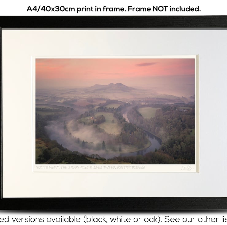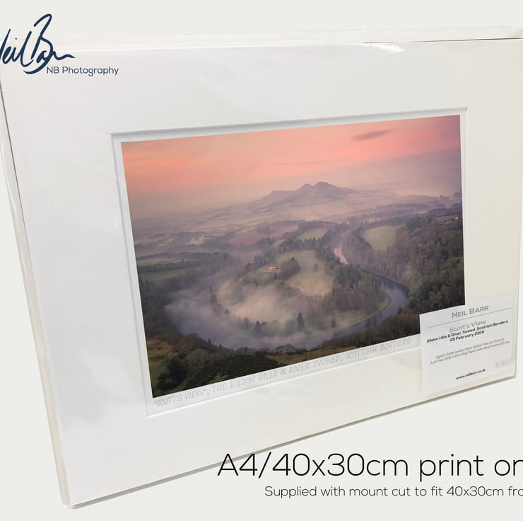 Supplied already mounted, wrapped & with signed labels & certificate, the image is printed on A4 size fine art paper (210x297mm). The actual image size is smaller (see listing images for sizes - image approx. 268x179mm) to allow for the signature & inscription. The 100% acid-free mount is cut to fit standard ready-made frames from high street stores. EXTERNAL mount size is 40cm x 30cm. This is the OUTSIDE size of the mount (and thus the size your frame should be).