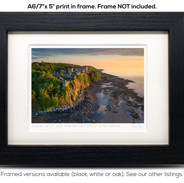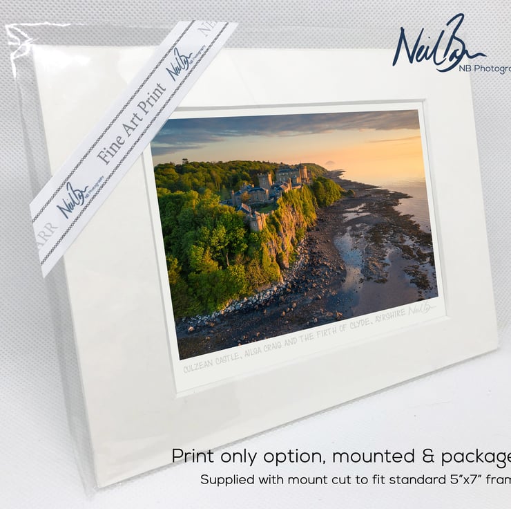 Supplied already mounted, wrapped & with signed labels & certificate, the image is printed on A6 size fine art paper (148x105mm). The actual image size is smaller (see listing images for sizes - image approx. 115x77mm) to allow for the signature & inscription. The 100% acid-free mount is cut to fit standard ready-made frames from high street stores. EXTERNAL mount size is 7"x5". This is the OUTSIDE size of the mount (and thus the size your frame should be).