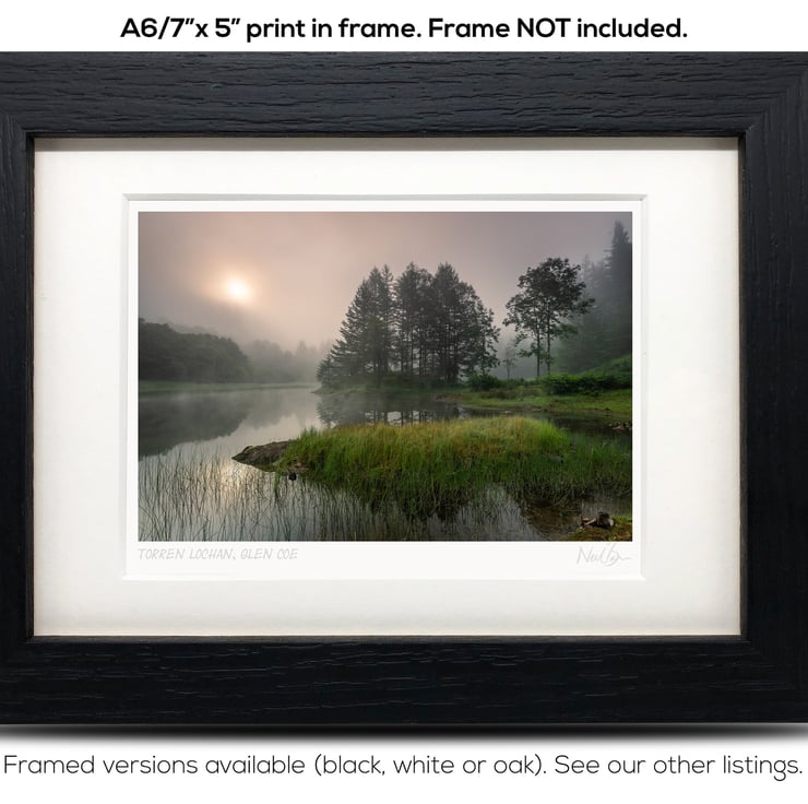 Supplied already mounted, wrapped & with signed labels & certificate, the image is printed on A6 size fine art paper (148x105mm). The actual image size is smaller (see listing images for sizes - image approx. 115x77mm) to allow for the signature & inscription. The 100% acid-free mount is cut to fit standard ready-made frames from high street stores. EXTERNAL mount size is 7"x5". This is the OUTSIDE size of the mount (and thus the size your frame should be).