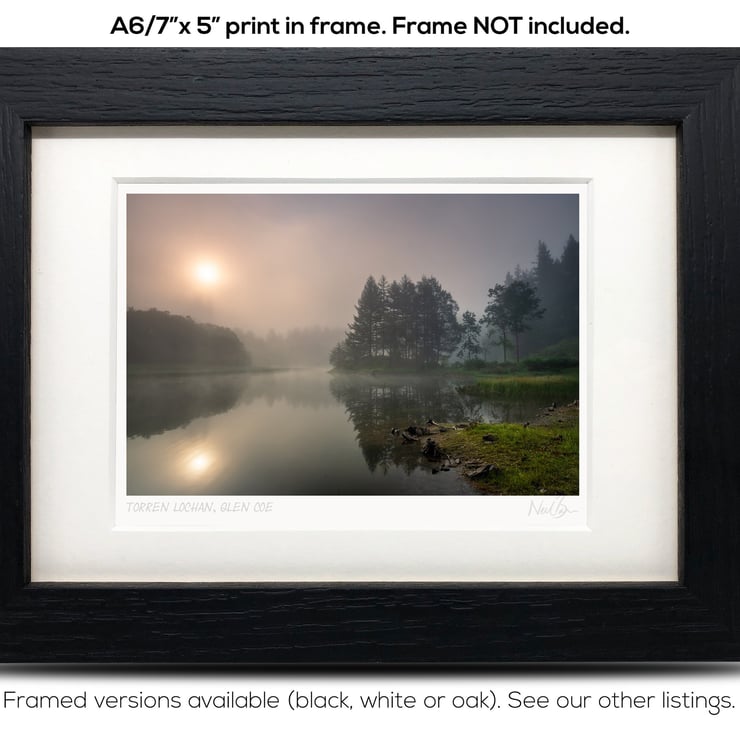 Supplied already mounted, wrapped & with signed labels & certificate, the image is printed on A6 size fine art paper (148x105mm). The actual image size is smaller (see listing images for sizes - image approx. 115x77mm) to allow for the signature & inscription. The 100% acid-free mount is cut to fit standard ready-made frames from high street stores. EXTERNAL mount size is 7"x5". This is the OUTSIDE size of the mount (and thus the size your frame should be).