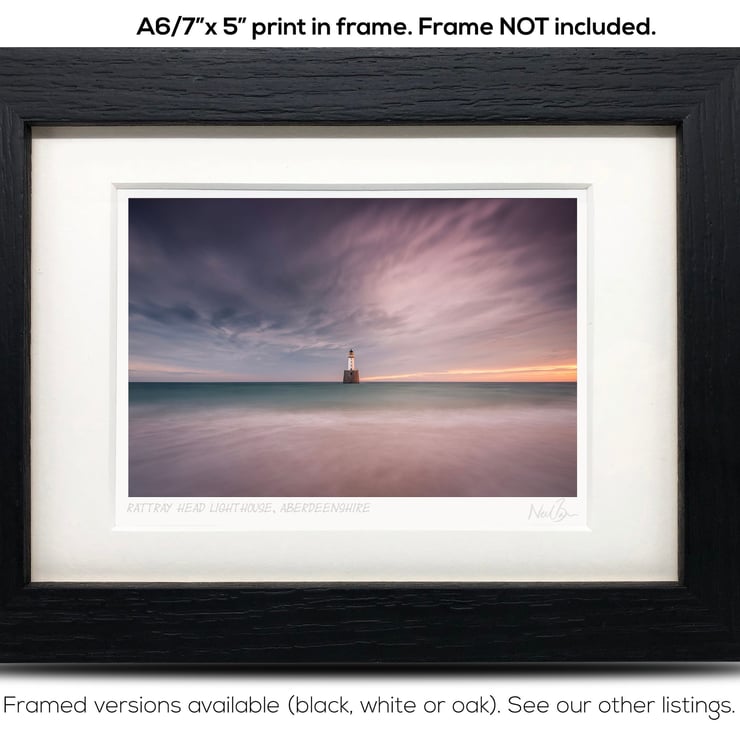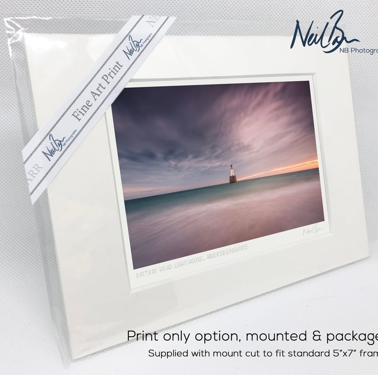 Supplied already mounted, wrapped & with signed labels & certificate, the image is printed on A6 size fine art paper (148x105mm). The actual image size is smaller (see listing images for sizes - image approx. 115x77mm) to allow for the signature & inscription. The 100% acid-free mount is cut to fit standard ready-made frames from high street stores. EXTERNAL mount size is 7"x5". This is the OUTSIDE size of the mount (and thus the size your frame should be).