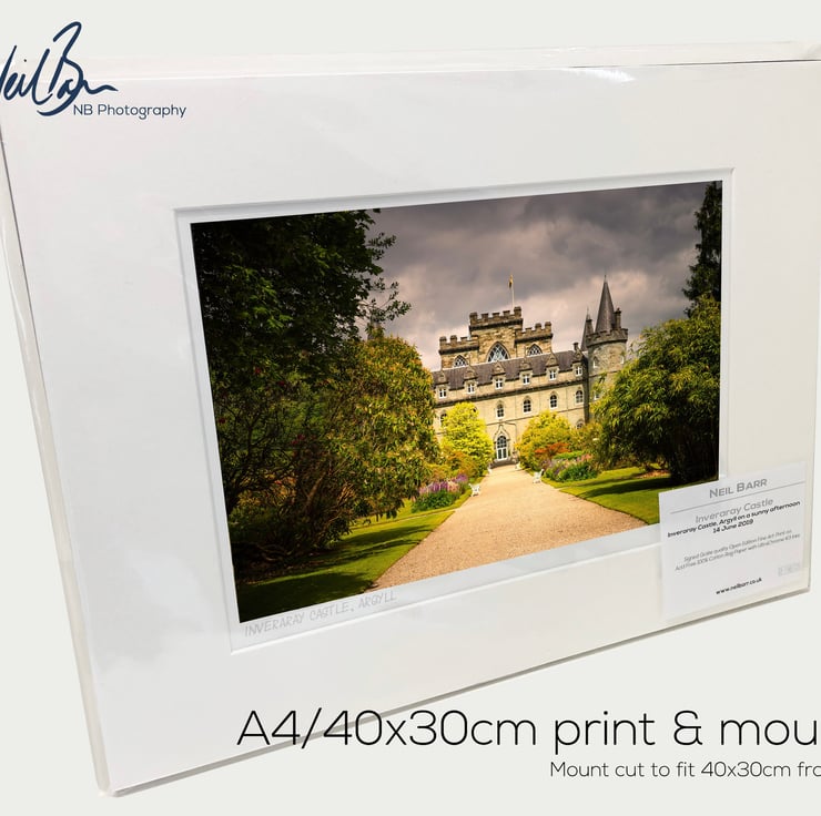 Supplied already mounted, wrapped & with signed labels & certificate, the image is printed on A4 size fine art paper (210x297mm). The actual image size is smaller (see listing images for sizes - image approx. 268x179mm) to allow for the signature & inscription. The 100% acid-free mount is cut to fit standard ready-made frames from high street stores. EXTERNAL mount size is 40cm x 30cm. This is the OUTSIDE size of the mount (and thus the size your frame should be).