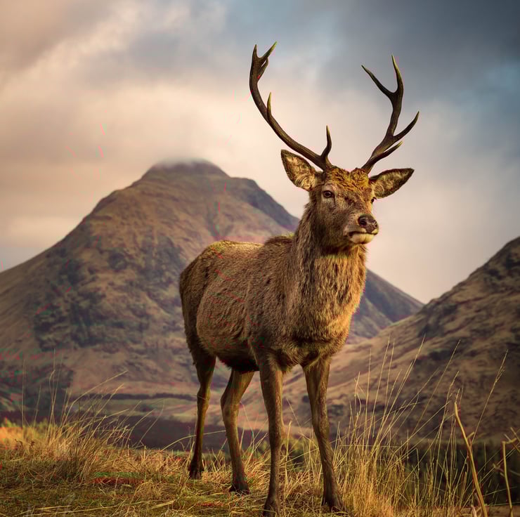 Image: "The Stag" - Scottish Red Deer stag in Glen Etive, looking towards Stob na Broige, 1 January 2019 - by Scotland photographer Neil Barr