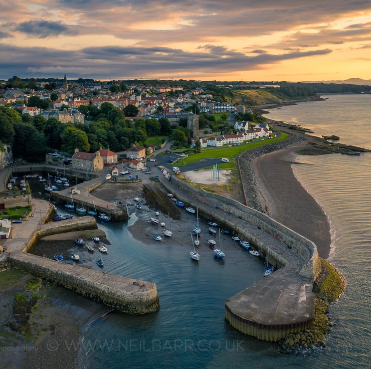 Image: "Dysart" - Dysart and Dysart Harbour at sunrise, 18 August 2021 - by Scotland photographer Neil Barr