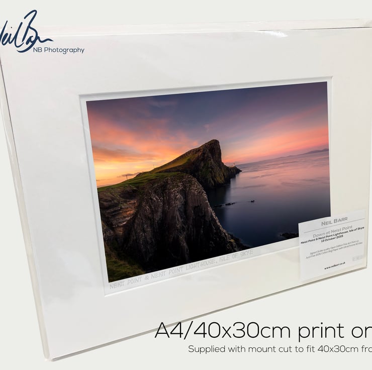 Supplied already mounted, wrapped & with signed labels & certificate, the image is printed on A4 size fine art paper (210x297mm). The actual image size is smaller (see listing images for sizes - image approx. 268x179mm) to allow for the signature & inscription. The 100% acid-free mount is cut to fit standard ready-made frames from high street stores. EXTERNAL mount size is 40cm x 30cm. This is the OUTSIDE size of the mount (and thus the size your frame should be).