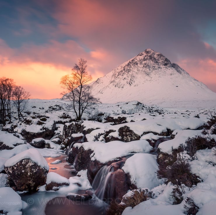 Image: "Buachaille Etive M r" - Classic view of Stob Dearg and River Coupall, 4 March 2015 - by Scotland photographer Neil Barr