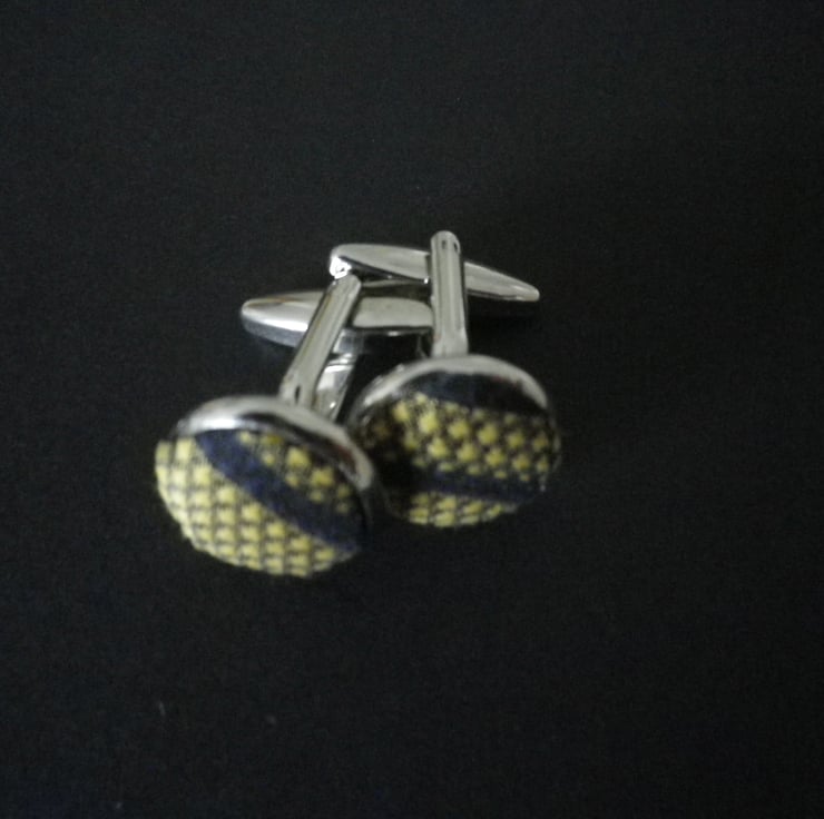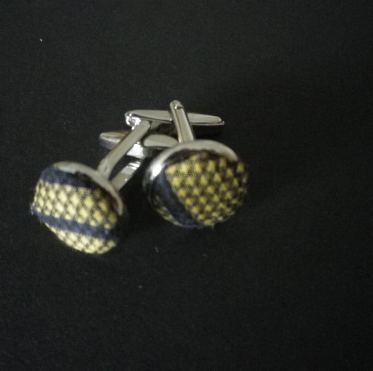 Yellow and navy silk cufflinks,free shipping, gift wrapped, classic design, 1234