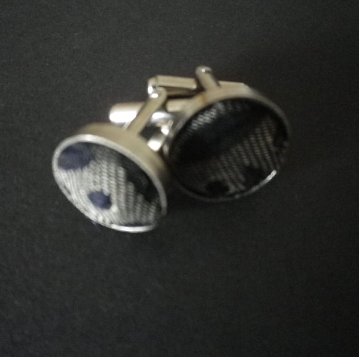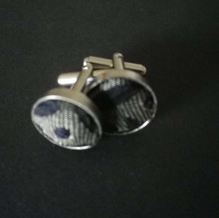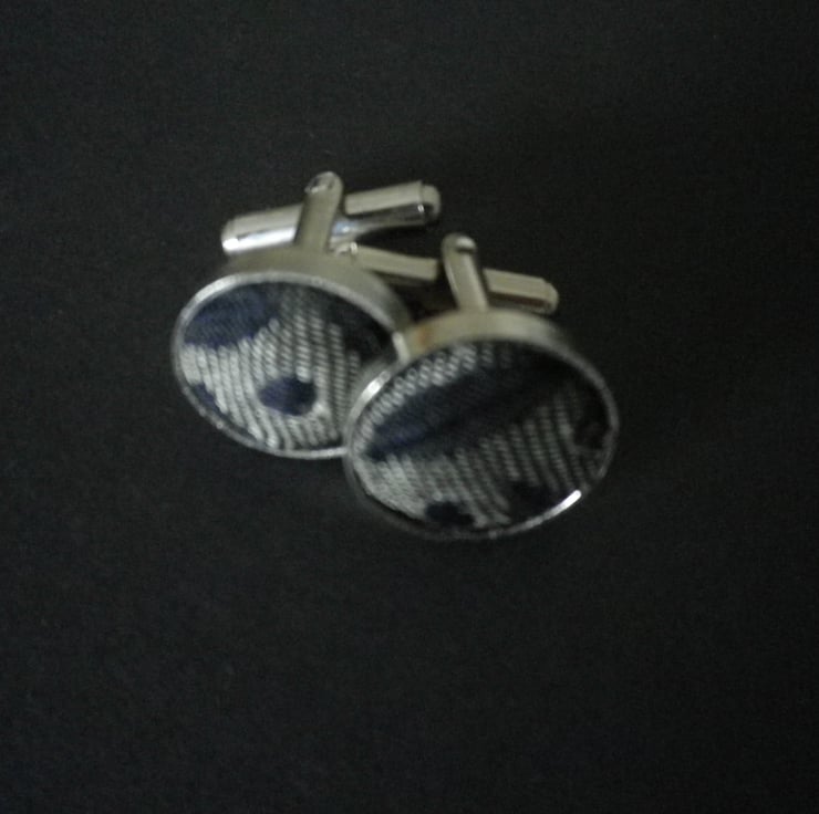 Navy and cream pure silk cufflinks free shipping, gift wrapped, classic design