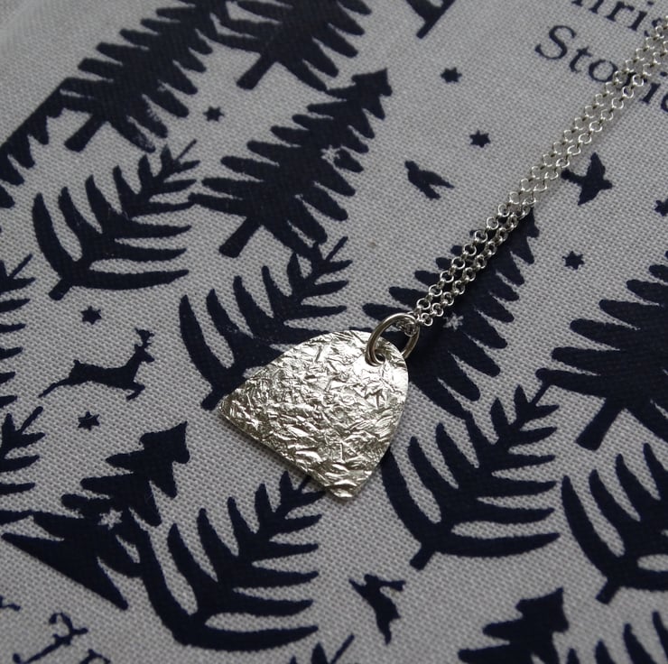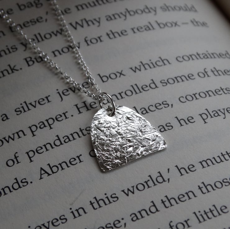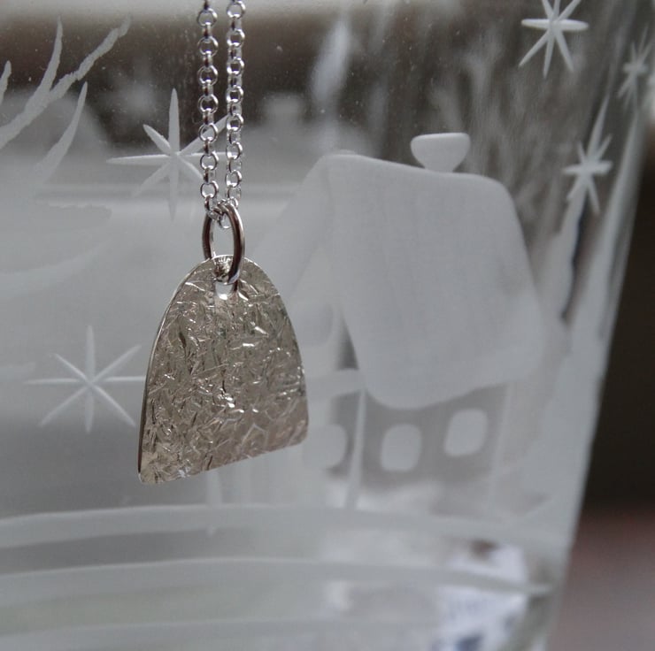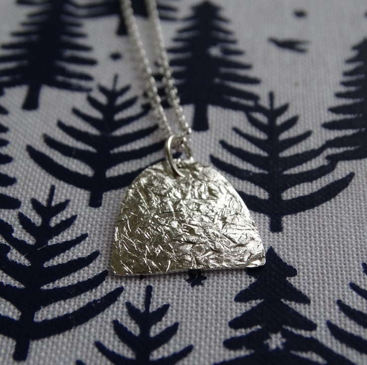 Contemporary silver arch pendant - winter frost textured - recycled silver