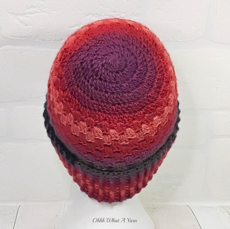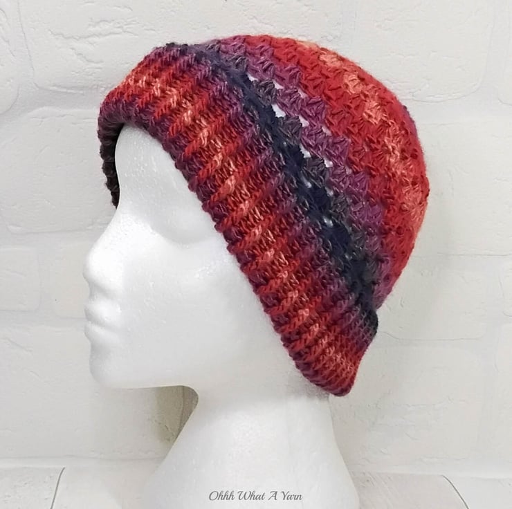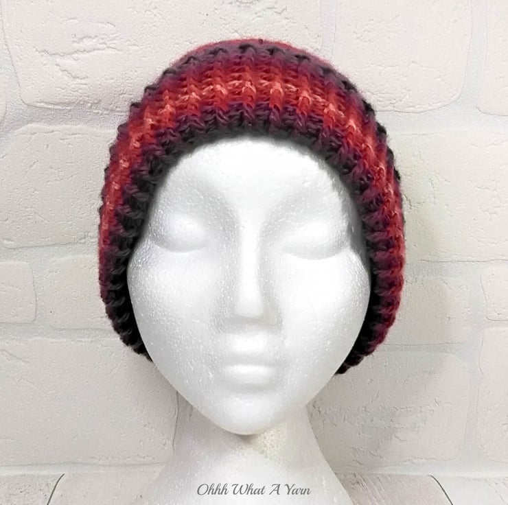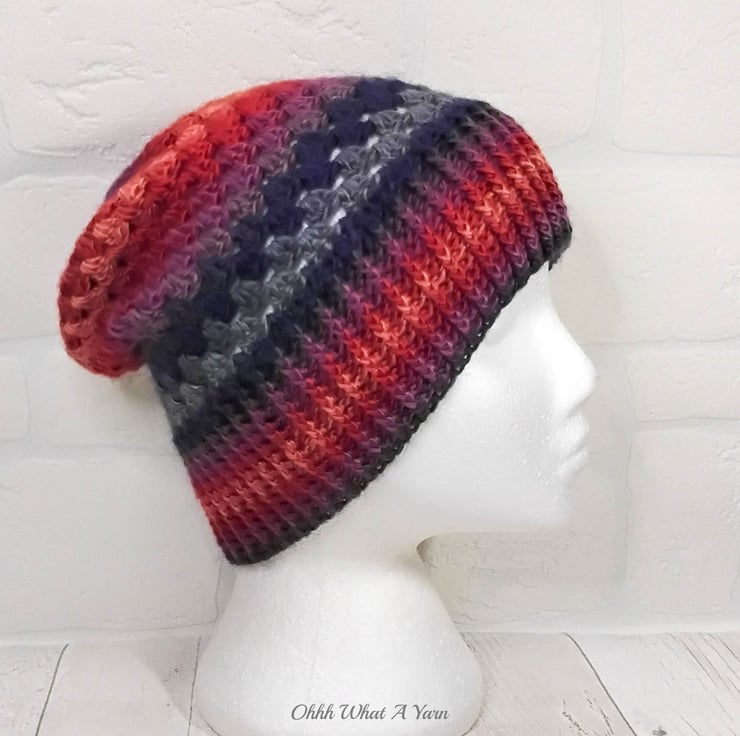 This gorgeous hat has been crocheted using premium 100% acrylic colour changing yarn.