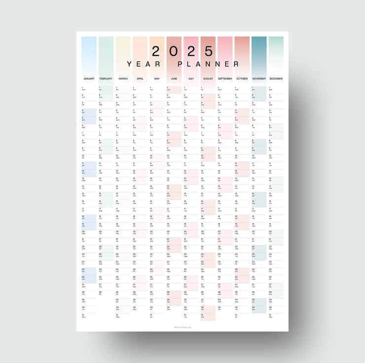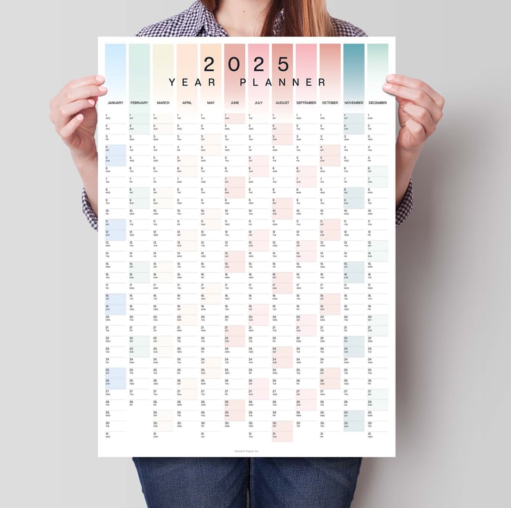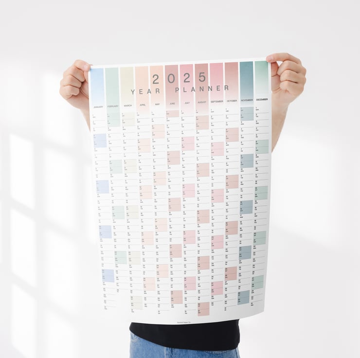 Organise your year with ease and style using our best-selling 2025 Wall Planner from Parkhill Paper Co. This year-to-view calendar is designed to bring calm and inspiration to your space, featuring a soothing palette of coastal colours reminiscent of serene seaside days. Perfect for keeping track of important dates, events, and plans, it’s both functional and beautifully designed.