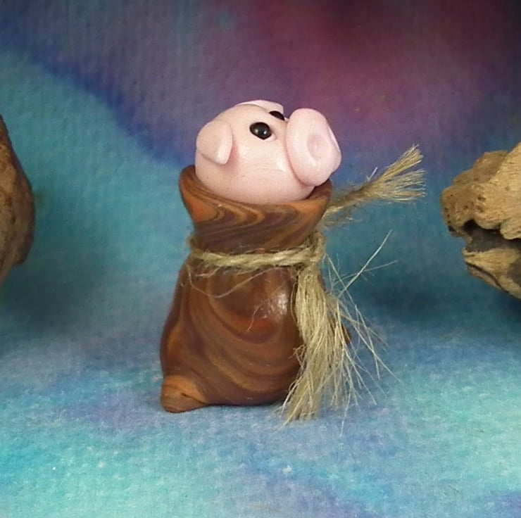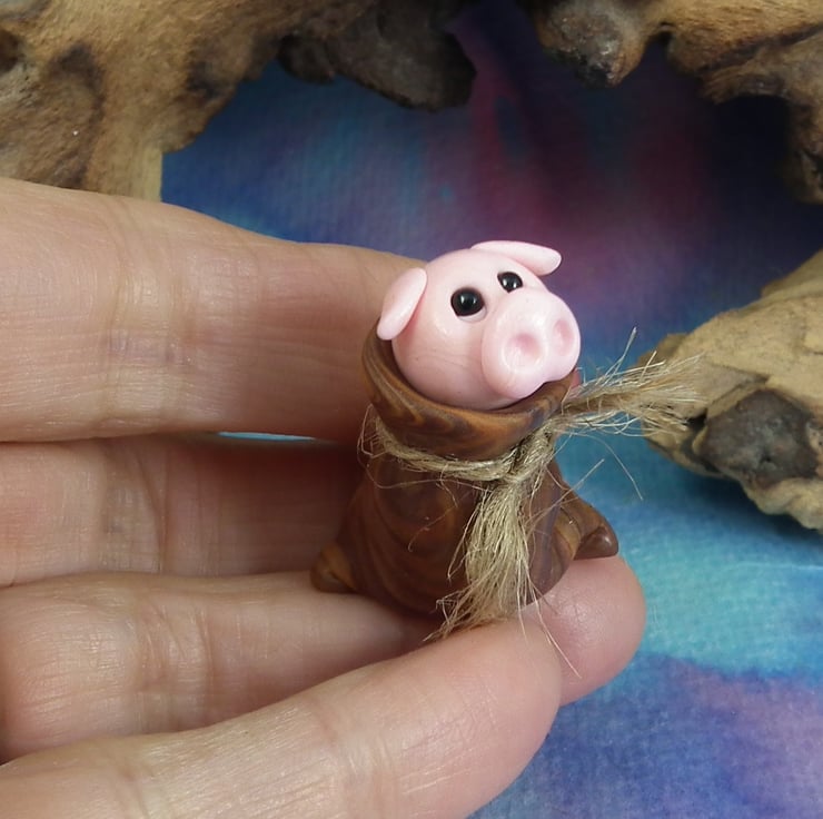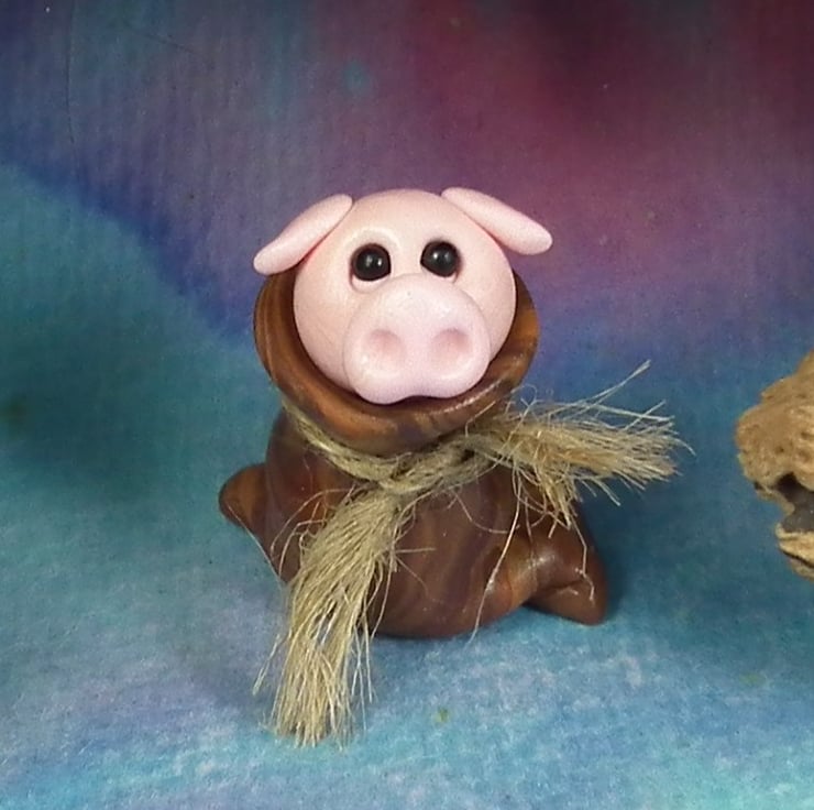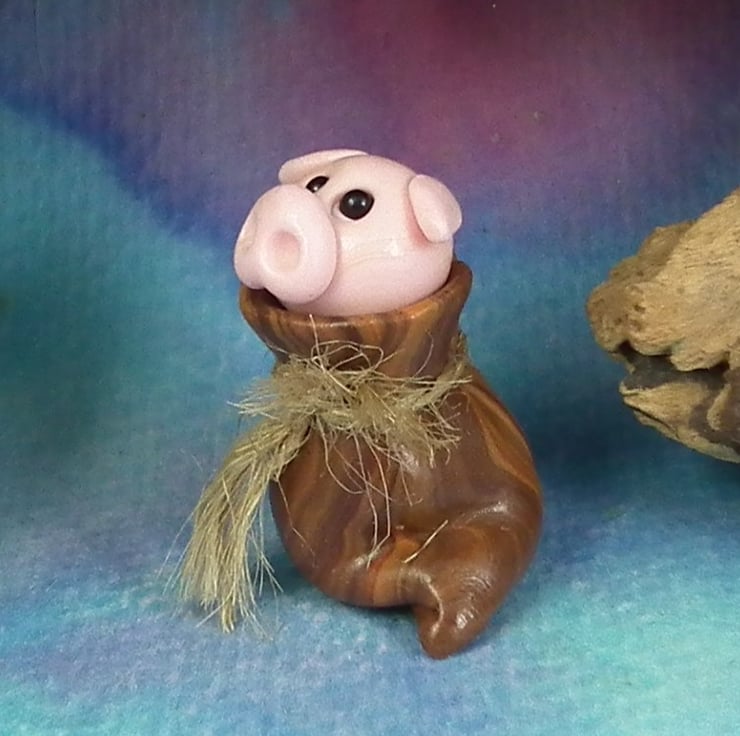 This is a 'one of a kind' creation having been entirely handmade without the use of moulds here at my studio on the Sussex Coast. Modelled with artist blend polymers before sealing with lacquer, the piglet has sparkling black onyx eyes. Just over one and a half inches high.