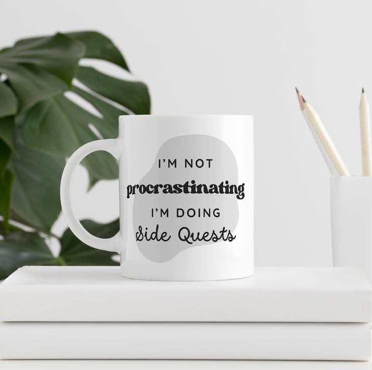Level up your coffee break with this hilarious "I'm Not Procrastinating; I'm Doing Side Quests" mug! Perfect for gamers, dreamers, or anyone who thrives on a good distraction, this mug celebrates the art of multitasking with a touch of humour. Whether you're working, gaming, or just avoiding chores, this mug is the perfect companion.