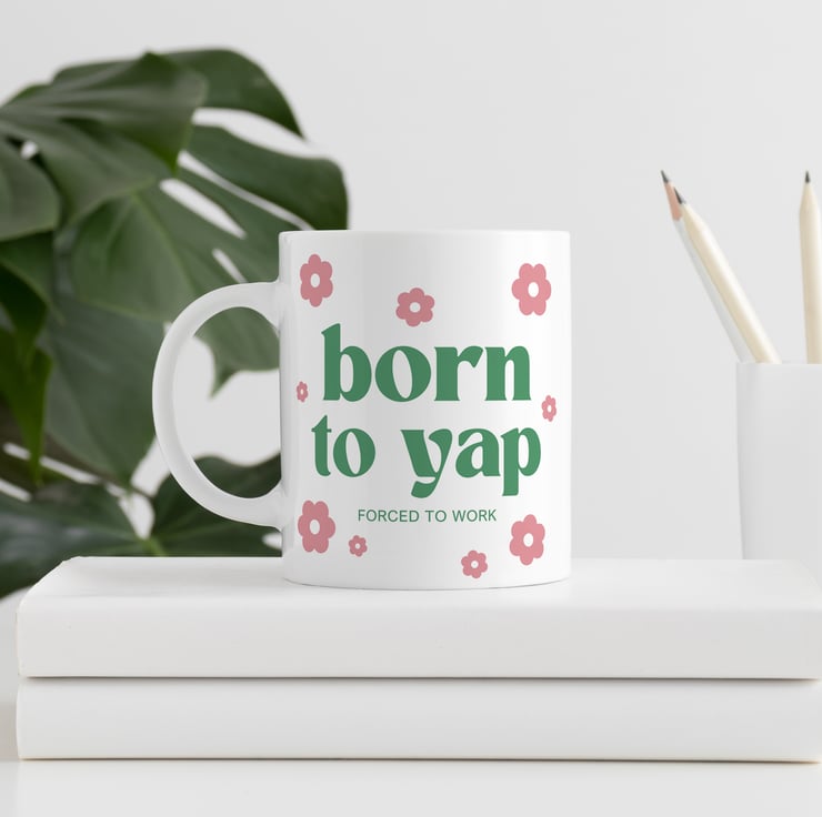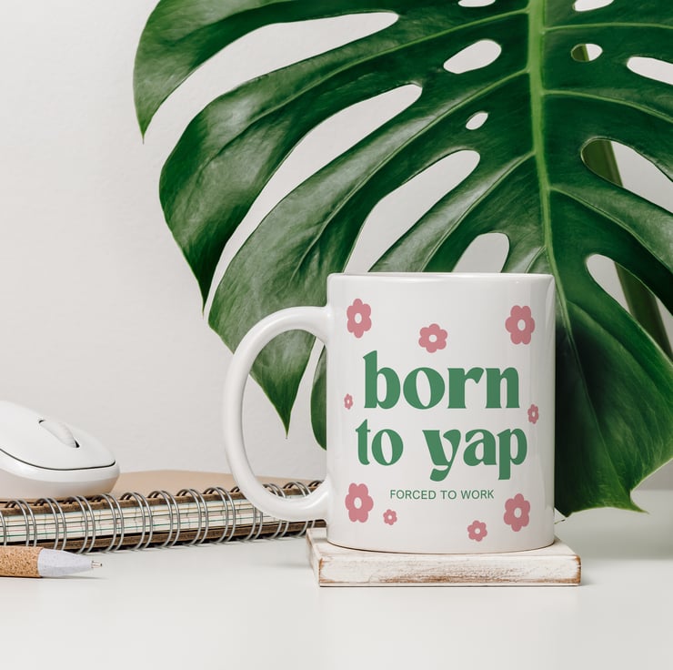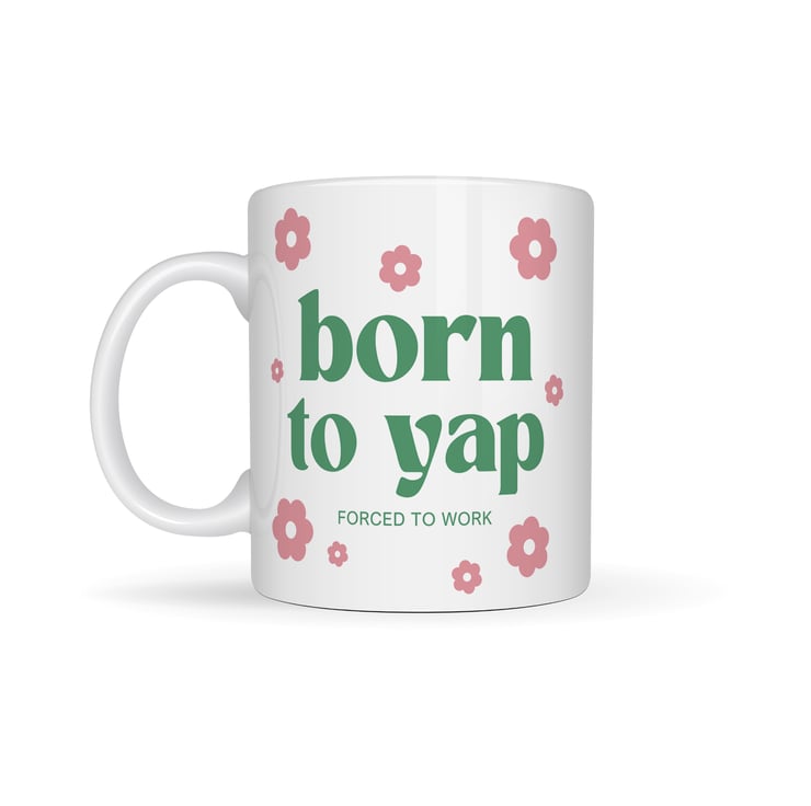 Add some humour to your workday with this hilarious "Born to Yap, Forced to Work" mug! Perfect for chatterboxes who thrive on conversation but find themselves stuck in the daily grind, this mug is a fun and relatable way to enjoy your coffee or tea. Whether you're at the office, working from home, or catching up with friends, this mug is guaranteed to spark smiles.