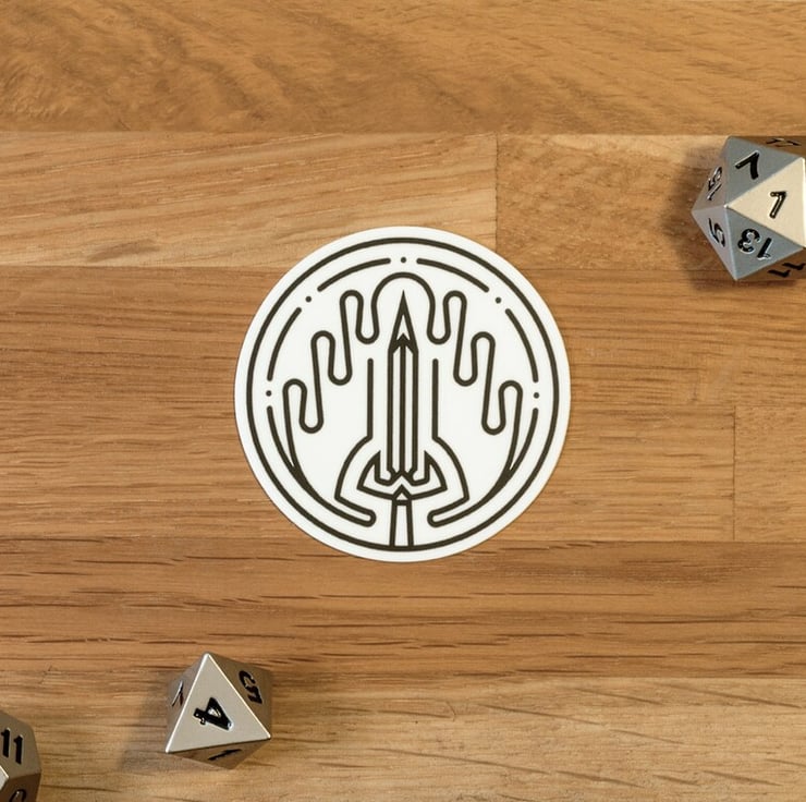 (Please note: the pictured dice set and notepad with example Rogue sticker are not included!)