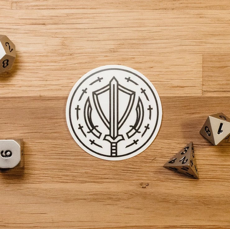 A stylish vinyl sticker for all the Fighters! Personalise your gaming gear and honour your class with this iconic Fighter design! These stickers measure 5x5cm and look awesome on laptops - or keep it low fi and stick one on a folder or notebook. They are especially nice on our special Inventory notepads!