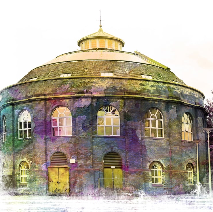 The Southern Rotunda Glasgow Clydeside ( with watercolour overlay)