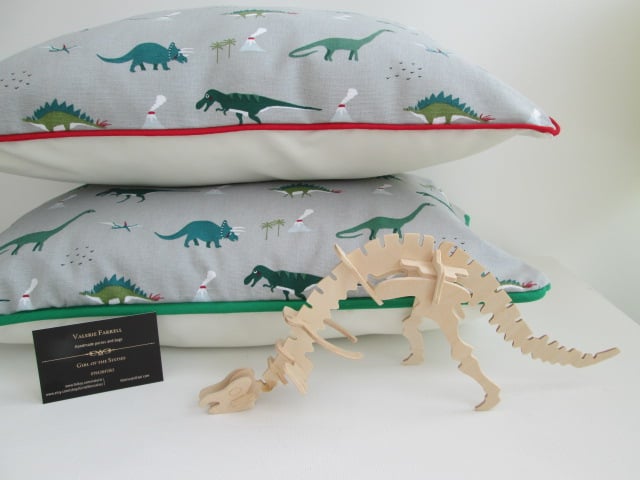 Sophie Allport Dinosaur Cushion  with Red Piping