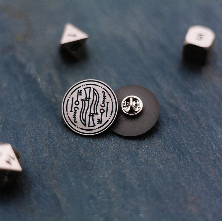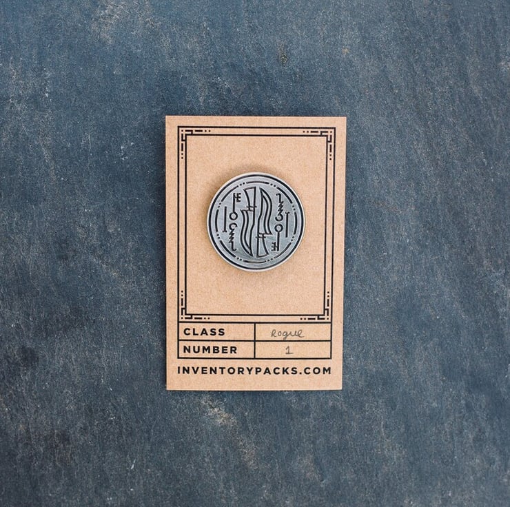 Our Rogue class icon, as a beautiful silver and black soft-enamel pin!