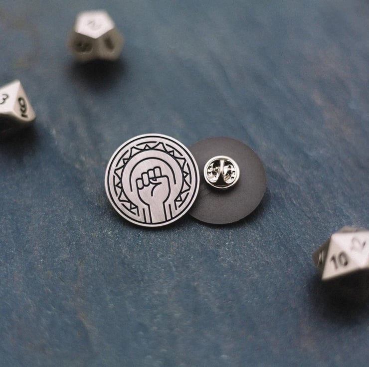Our Monk class icon, as a beautiful silver and black soft-enamel pin!
