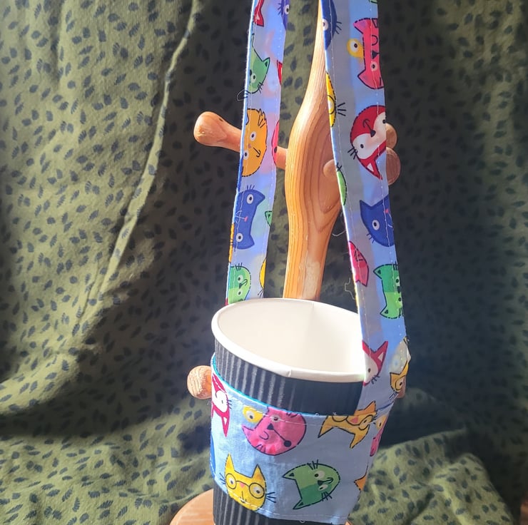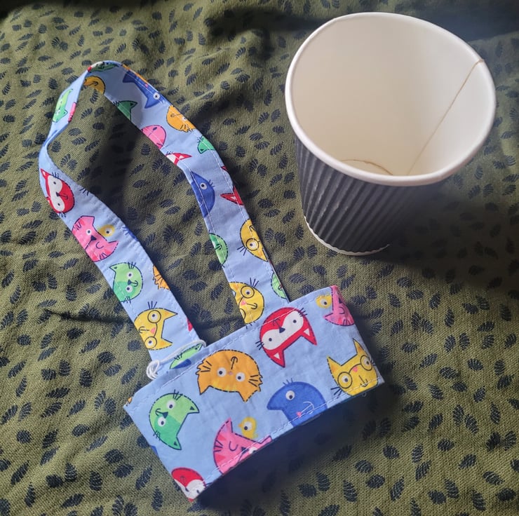 A handy carrier for takeaway coffees and other drinks. Carry several cups at once, each in it's own carrier. An easier way to do the coffee run, leaving your hands free for other things, like opening doors.