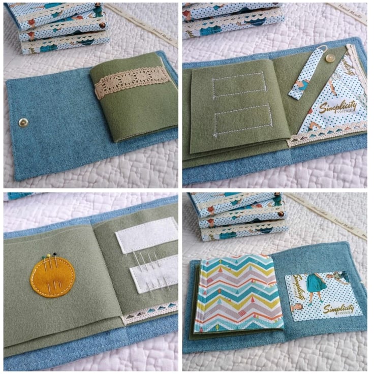 - Handmade needle case in a vintage style fabric with wool felt inner pages