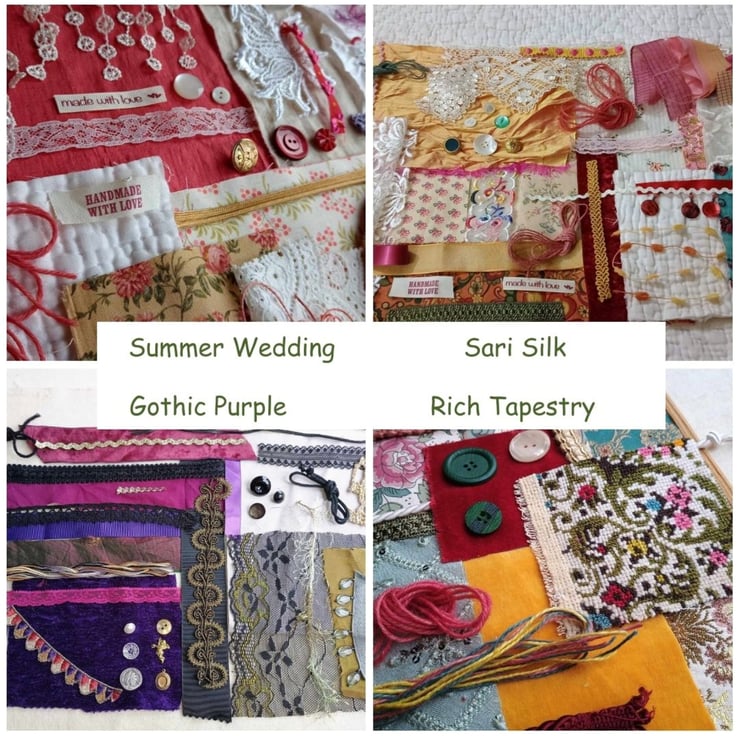 - Vintage fabric remnants and trims (over 30 pieces) based around a specific theme of your choice - see the drop down list for availabilty