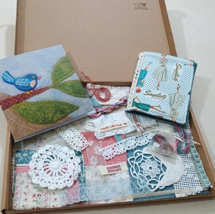 A box based around one of my vintage fabric slow stitching kits combined with my ready made Simplicity pattern themed needle case. A gorgeous gift for a crafty friend and presented in a sturdy postal box, this is ideal for gifting directly, or I can post on your behalf. Or just treat yourself.