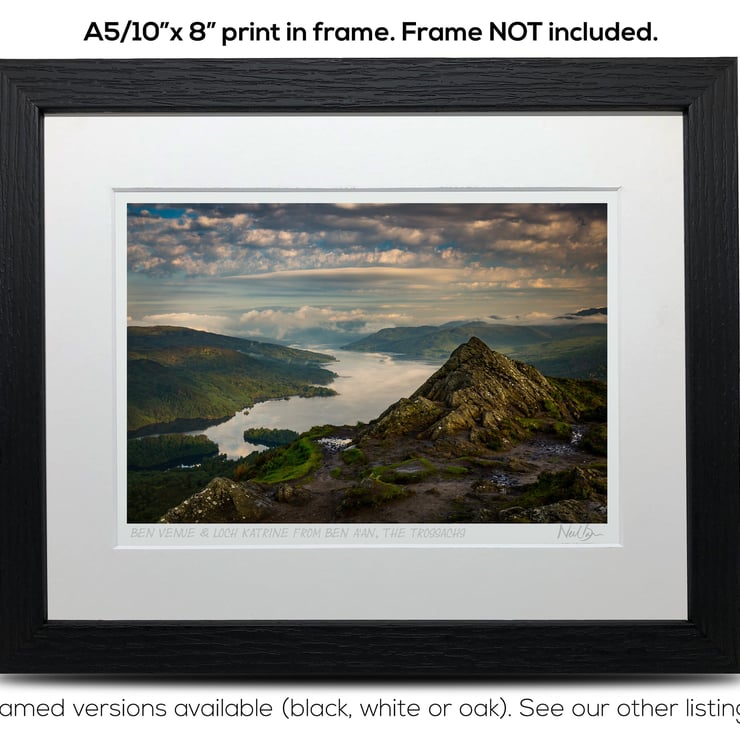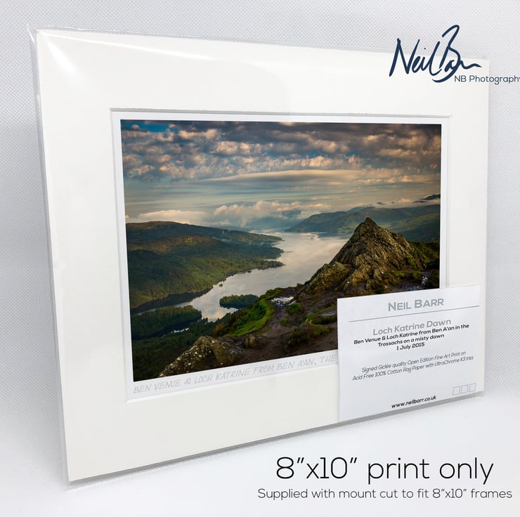 Supplied already mounted, wrapped & with signed labels & certificate, the image is printed on A5 size fine art paper (148x210mm). The actual image size is smaller (see listing images for sizes - image approx. 185x123mm) to allow for the signature & inscription. The 100% acid-free mount is cut to fit standard ready-made frames from high street stores. EXTERNAL mount size is 10"x8". This is the OUTSIDE size of the mount (and thus the size your frame should be).