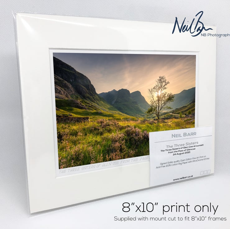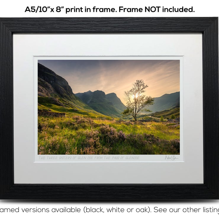 Supplied already mounted, wrapped & with signed labels & certificate, the image is printed on A5 size fine art paper (148x210mm). The actual image size is smaller (see listing images for sizes - image approx. 185x123mm) to allow for the signature & inscription. The 100% acid-free mount is cut to fit standard ready-made frames from high street stores. EXTERNAL mount size is 10"x8". This is the OUTSIDE size of the mount (and thus the size your frame should be).
