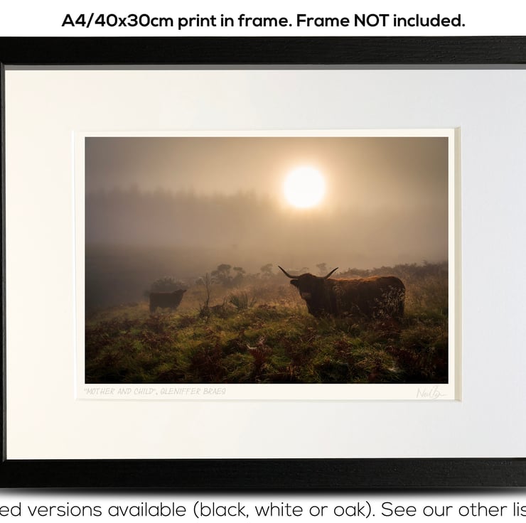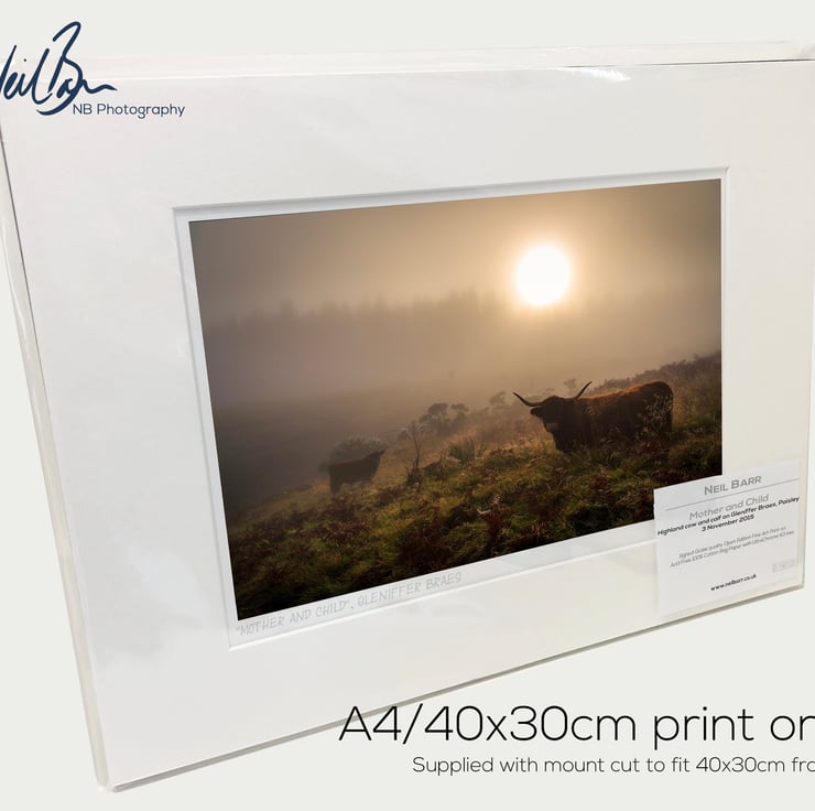Supplied already mounted, wrapped & with signed labels & certificate, the image is printed on A4 size fine art paper (210x297mm). The actual image size is smaller (see listing images for sizes - image approx. 255x179mm) to allow for the signature & inscription. The 100% acid-free mount is cut to fit standard ready-made frames from high street stores. EXTERNAL mount size is 40cm x 30cm. This is the OUTSIDE size of the mount (and thus the size your frame should be).