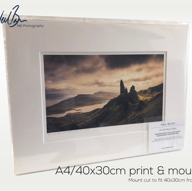 Supplied already mounted, wrapped & with signed labels & certificate, the image is printed on A4 size fine art paper (210x297mm). The actual image size is smaller (see listing images for sizes - image approx. 268x157mm) to allow for the signature & inscription. The 100% acid-free mount is cut to fit standard ready-made frames from high street stores. EXTERNAL mount size is 40cm x 30cm. This is the OUTSIDE size of the mount (and thus the size your frame should be).
