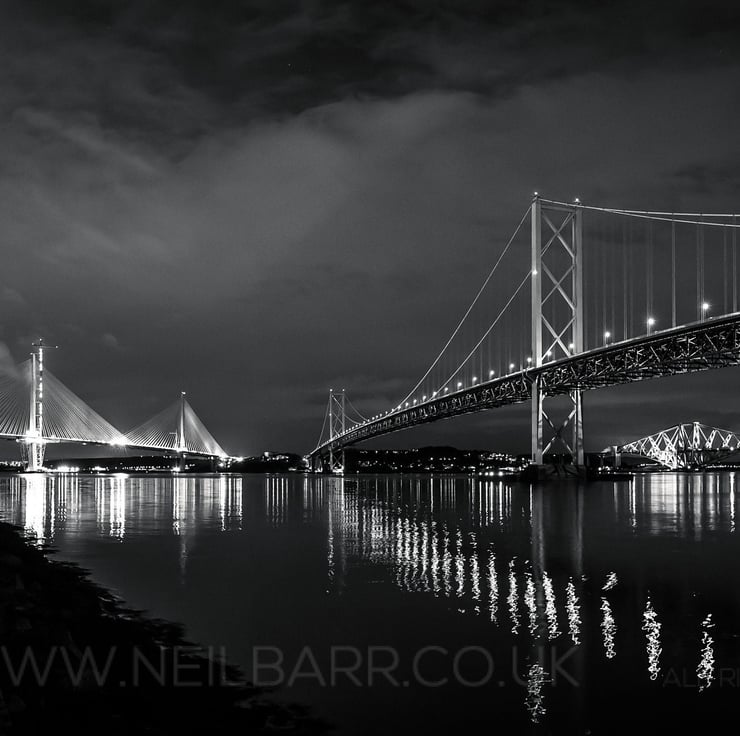 Image: "The Three Bridges" - The Queensferry Crossing, The Forth Road Bridge and the Forth Bridge across the River Forth, from Port Edgar, 6 March 2017 - by Scotland photographer Neil Barr