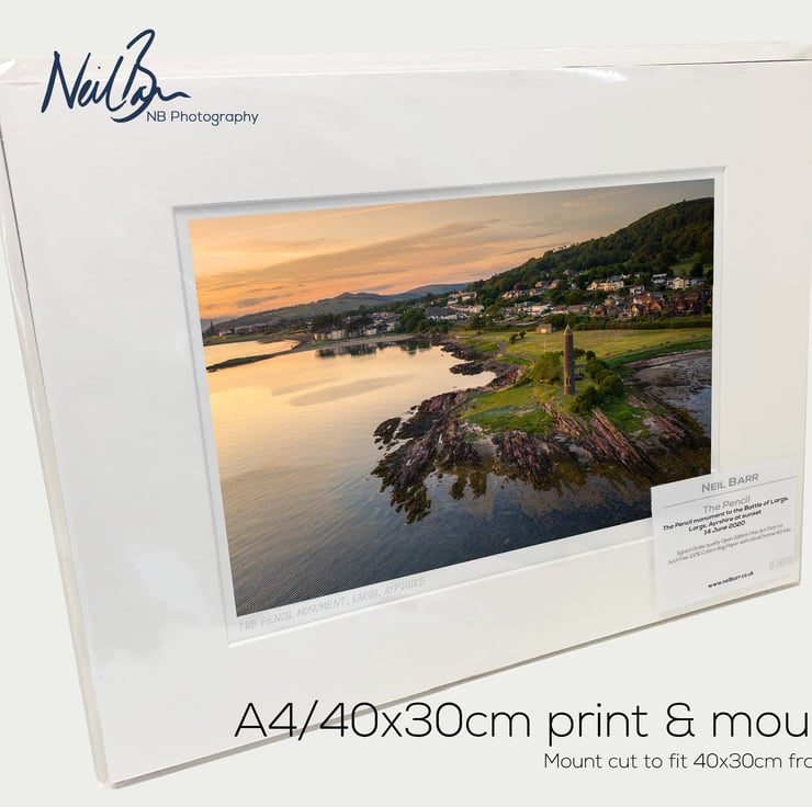 Supplied already mounted, wrapped & with signed labels & certificate, the image is printed on A4 size fine art paper (210x297mm). The actual image size is smaller (see listing images for sizes - image approx. 268x179mm) to allow for the signature & inscription. The 100% acid-free mount is cut to fit standard ready-made frames from high street stores. EXTERNAL mount size is 40cm x 30cm. This is the OUTSIDE size of the mount (and thus the size your frame should be).