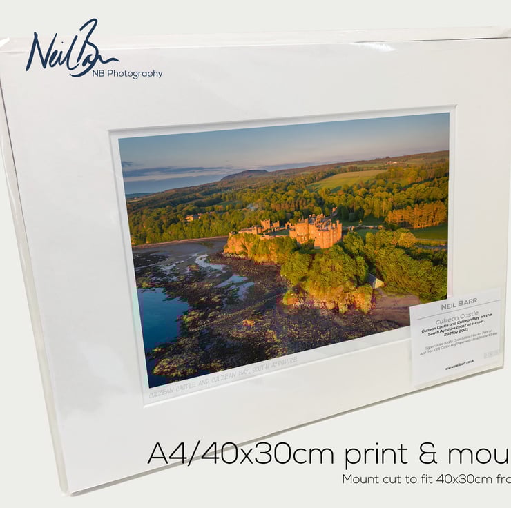 Supplied already mounted, wrapped & with signed labels & certificate, the image is printed on A4 size fine art paper (210x297mm). The actual image size is smaller (see listing images for sizes - image approx. 268x179mm) to allow for the signature & inscription. The 100% acid-free mount is cut to fit standard ready-made frames from high street stores. EXTERNAL mount size is 40cm x 30cm. This is the OUTSIDE size of the mount (and thus the size your frame should be).