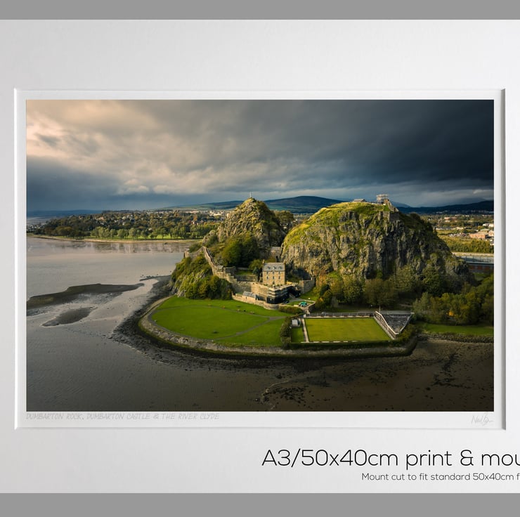 Image: "Dumbarton Rock" - Dumbarton Rock and Dumbarton Castle looking down the River Clyde, 4 October 2018 - by Scotland photographer Neil Barr