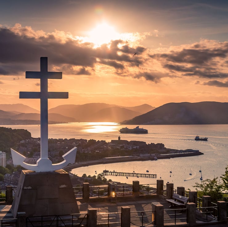 Image: "Departing the Clyde" - Cruise ship leaving Greenock & the River Clyde below the Free French Memorial on Lyle Hill above Gourock & Greenock, 25 May 2016 - by Scotland photographer Neil Barr