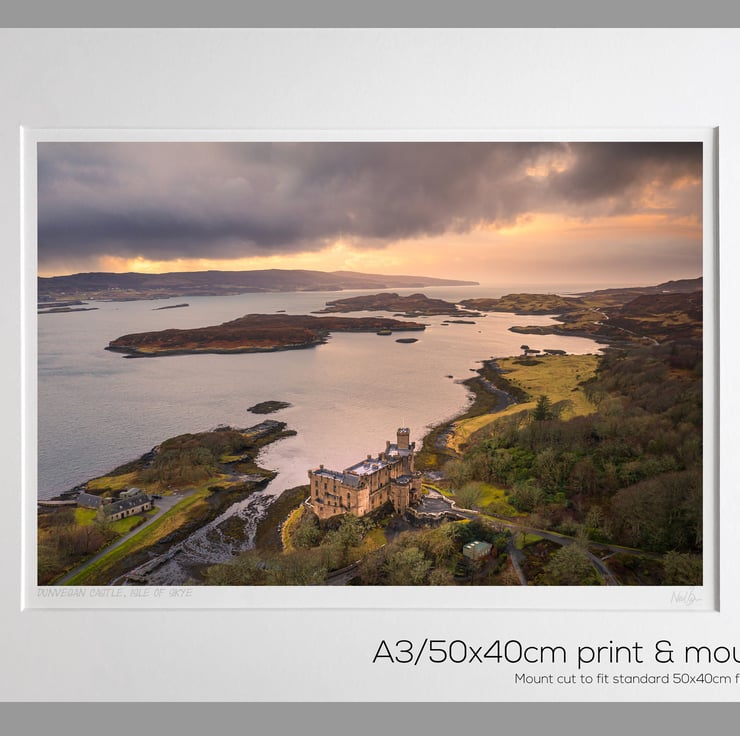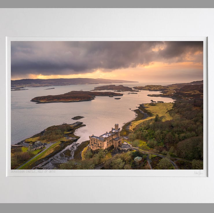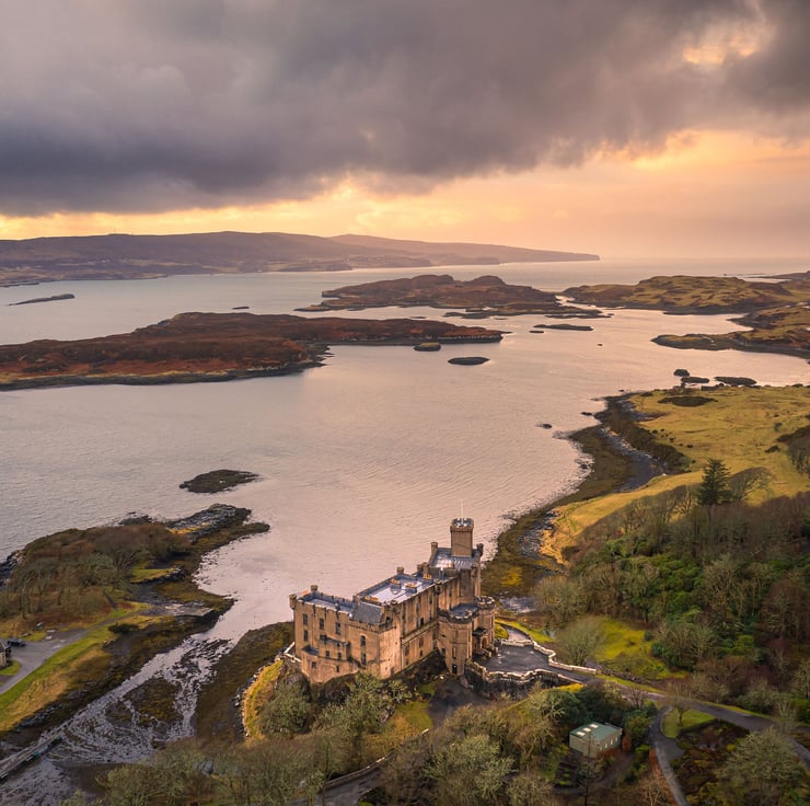 Image: "Dunvegan Castle" - Dunvegan Castle on the Isle of Skye & Loch Dunvegan at sunset, 1 March 2020 - by Scotland photographer Neil Barr